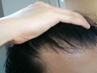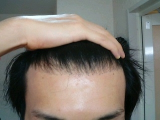 確実に、パッと見た人の生え際のラインは指一本分下がってます。