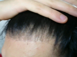 生え際は無毛地帯でしたのでスッカスカですが、
