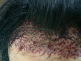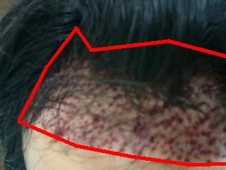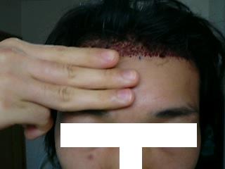 自毛植毛の手術当日の額の写真
